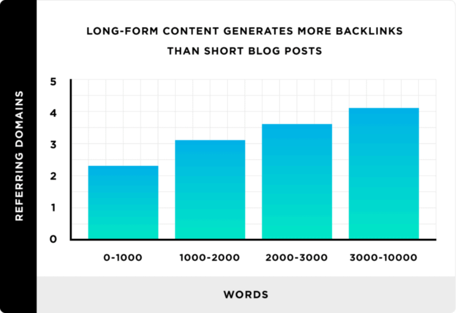 Backlinko study reveals that longer pieces of content receive considerably 77.2% more backlinks compared to short articles. Detailed articles also enhance user experience, which provides good signals to the engines and increases the authority of the site in the long run.